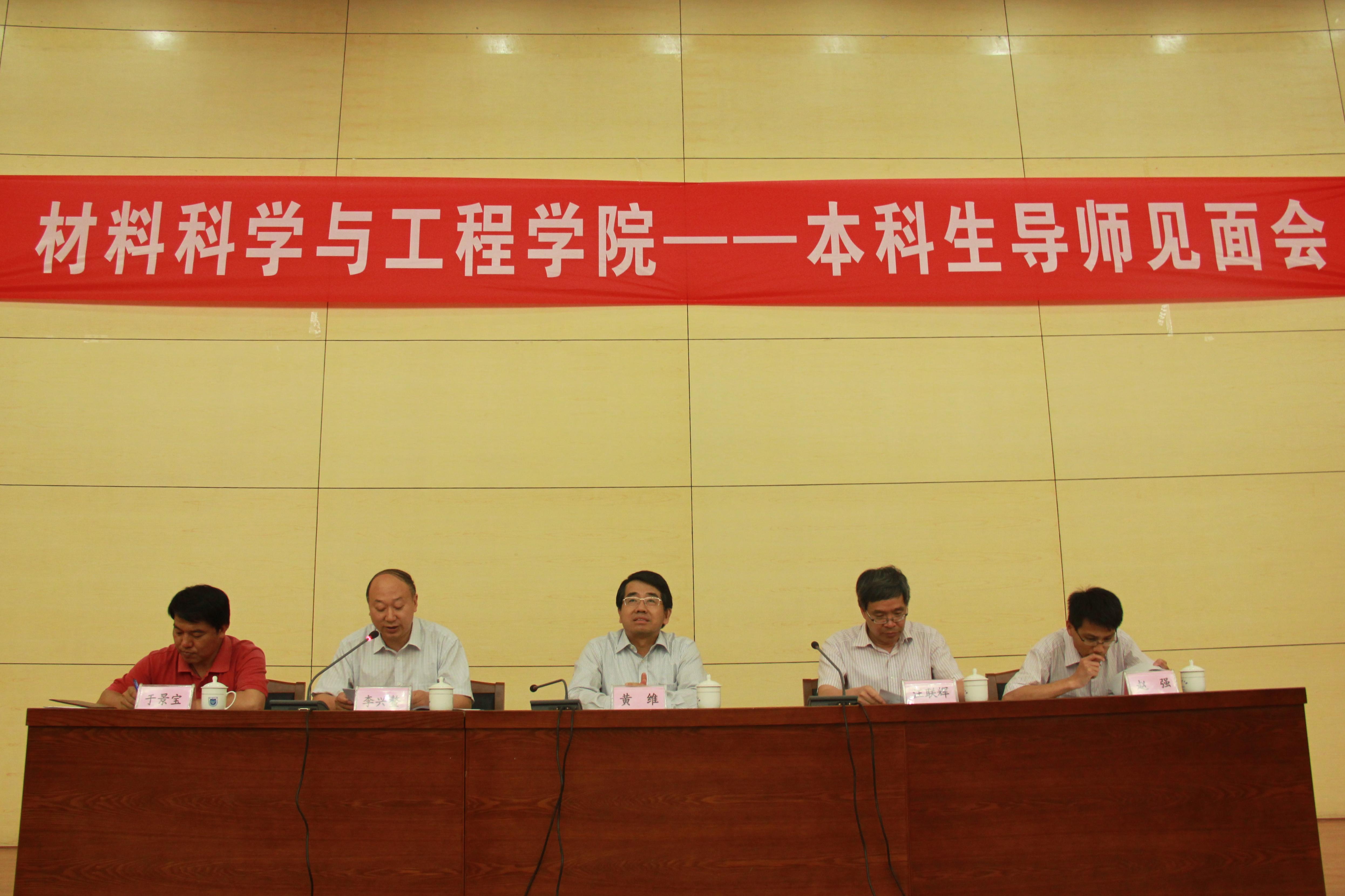 院长汪联辉教授,党委书记兼副院长李兴鳌教授,副院长赵强教授,院党委副书记于景宝老师,材料院全体导师,2013级辅导员李娜老师,全体2013级本科生参加了见面会。大会由李兴鳌书记主持。