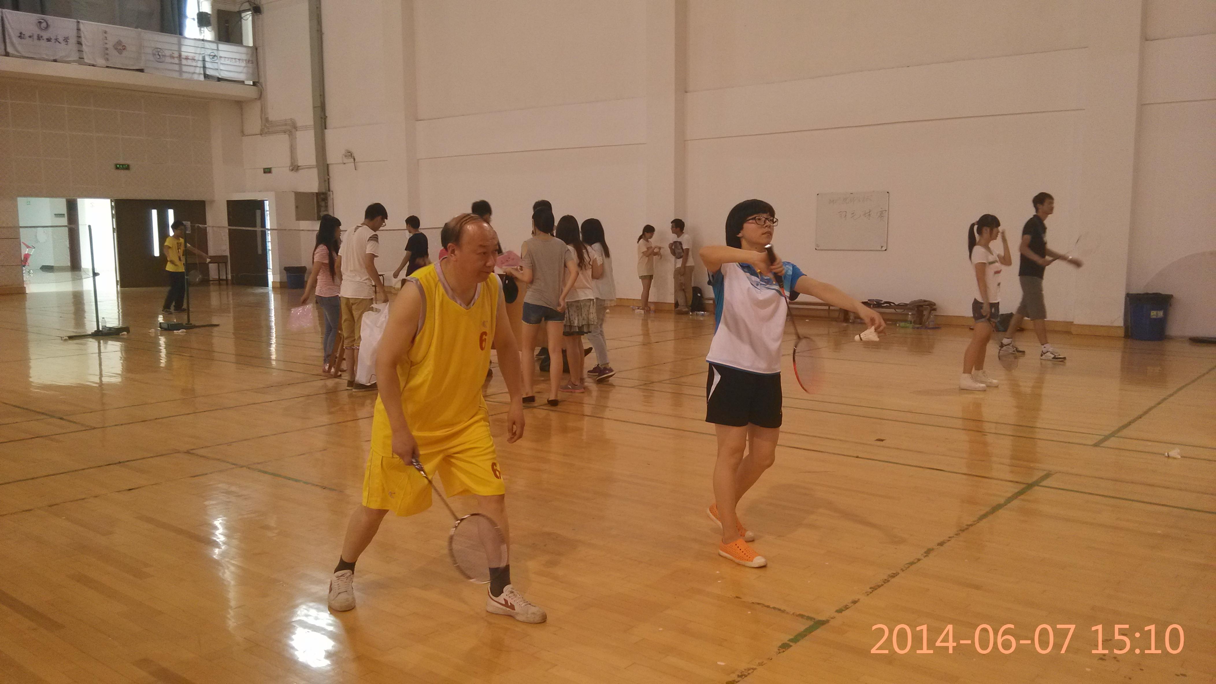赛场上,选手们身手敏捷、步履轻盈、挥汗如雨,他们淋漓尽致地展现了各自的技艺。经过场场激烈的角逐,由李兴鳌教授、蒋毛同学和路虎、张海婷同学组成的两支队伍杀出重围,站在了决赛的赛场之上。蒋毛同学一次次精彩的扣杀,李兴鳌教授一次次完美的防守,攻防兼备,组成了一支天衣无缝的队伍。路虎与张海婷两位的合作也不甘示弱,一次次的冲击着对方的防线,赢得了在场边众的阵阵掌声。最终,李兴鳌教授与蒋毛同学组成的混双队伍以2:1的比分击败对手,成为本次羽毛球赛的冠军。比赛在师生们的欢呼声中圆满结束。