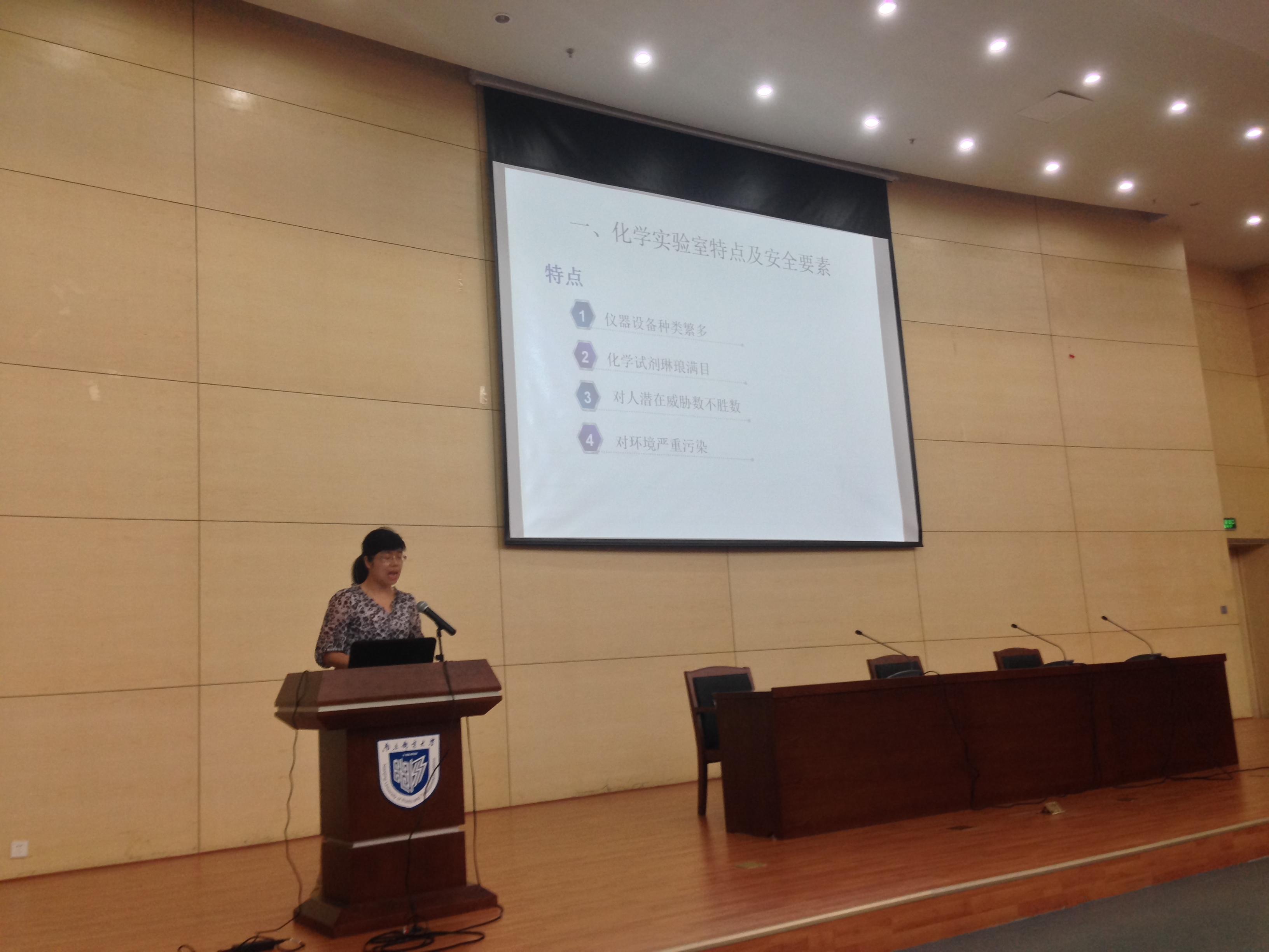 周舟老师就化学实验室的特点、安全要素、各类危险的防范措施、化学试剂的存放和正确使用、易制毒化学品安全管理、污染物排放管理的环保基本要求等方面展开了详细讲解,告诫同学们牢固树立“安全第一,以人为本”的观念。