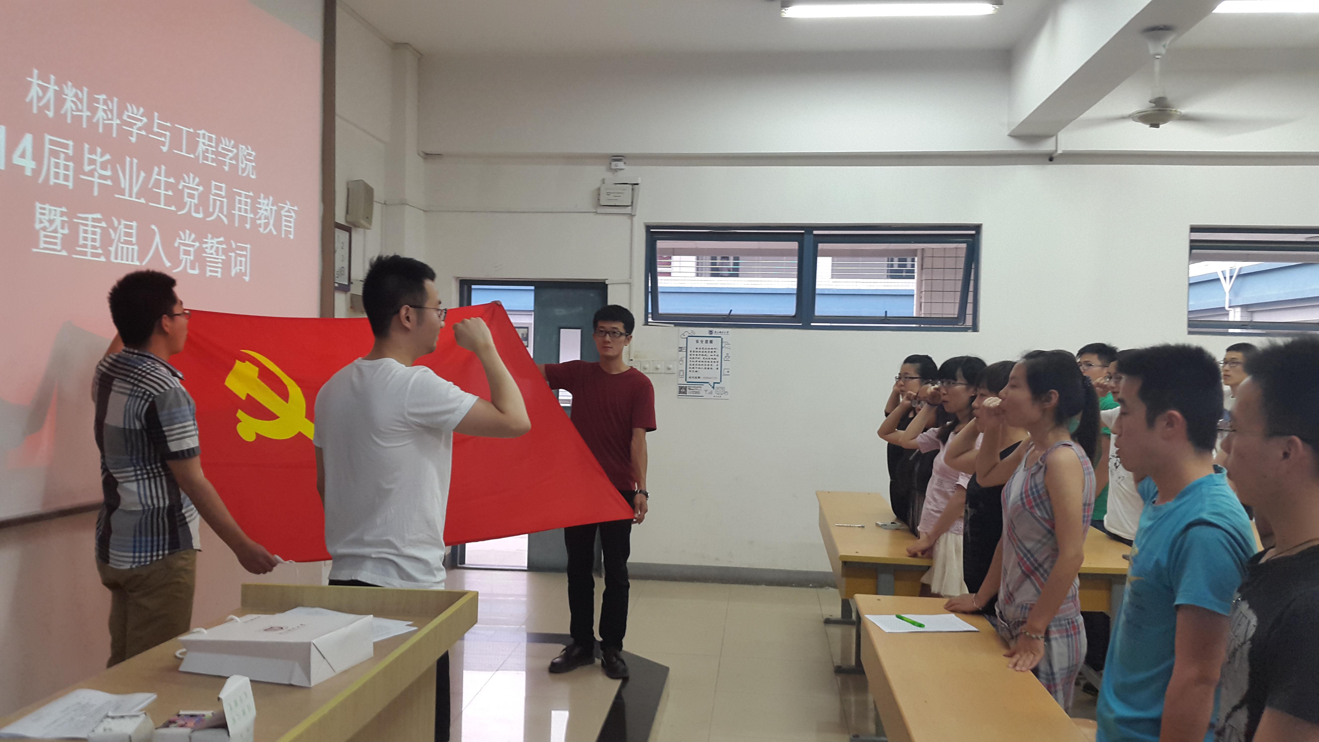 为了切实加强毕业生党员教育,提高毕业生党员的党性修养,激励毕业生党员在文明离校工作中充分发挥模范带头作用。6月10日,开云体育app下载 在教3-404教室举行了2014届毕业生党员再教育暨重温入党誓词主题活动。参加人员有院党委副书记于景宝老师,院组织干事、2010级辅导员刘颖老师及2010级本科生支部全体党员。