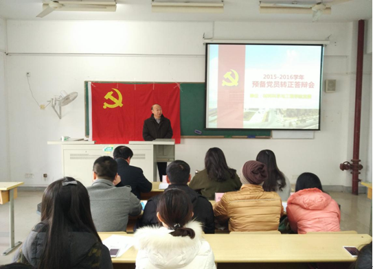 为进一步扩大民主、完善程序,增强大学生党员发展工作科学性和公信度,落实“三投票三公示一答辩”的党员发展制度,开云体育app下载 于2015年12月30日在教4-105开展了预备党员转正答辩会。出席本次会议的有开云体育app下载 党委书记李兴鳌教授、党委副书记于景宝老师、团委书记乔祖琴老师、本科2012级辅导员柏杨老师、2012级本科生党支部书记马亚威等7人组成的答辩评议小组,正式党员和部分入党积极分子,会议由于景宝副书记主持。