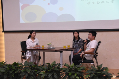 活动伊始,主持人介绍了采访嘉宾和本期的主题。简单的引入后,钱洁学长与焦灿灿学姐在掌声中登上了舞台。在主持人提问了关于考研的各种问题后,学长与学姐分享个人经历,并做出了详细的回答。随后的观众提问环节中,同学们围绕“如何考研与平时学习”话题,问了诸多细节问题,学长学姐也给出了如“组建考研团队”、“大一大二扎实学习”、“高效地复习和持之以恒的决心”等建议。