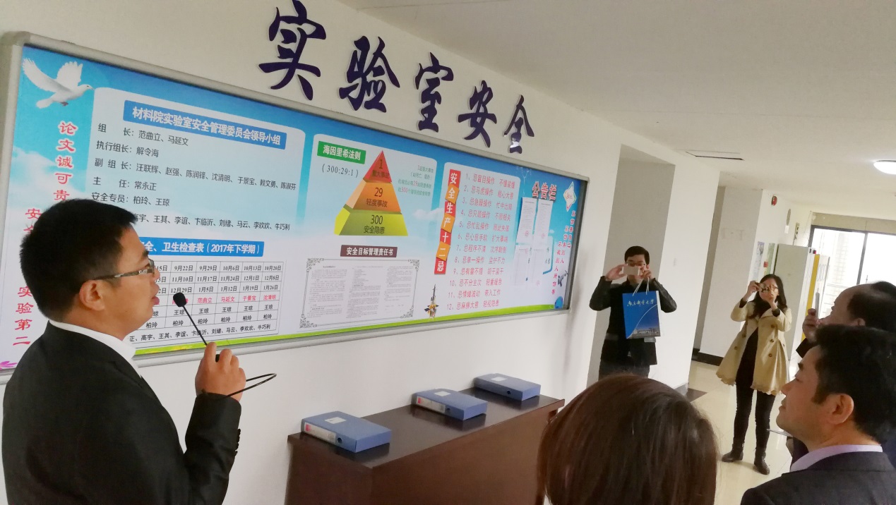 10月16日上午,由江苏省教育厅组织的安全工作检查组来到开云体育app下载 ,对开云体育app下载 的危化品管理与科研实验室安全工作进行专项检查。副校长张志华,资产管理与实验室建设处、科研院、研究生院、保卫处等单位负责人陪同检查,院党委书记马延文教授、副院长解令海教授、沈清明教授等陪同接待。