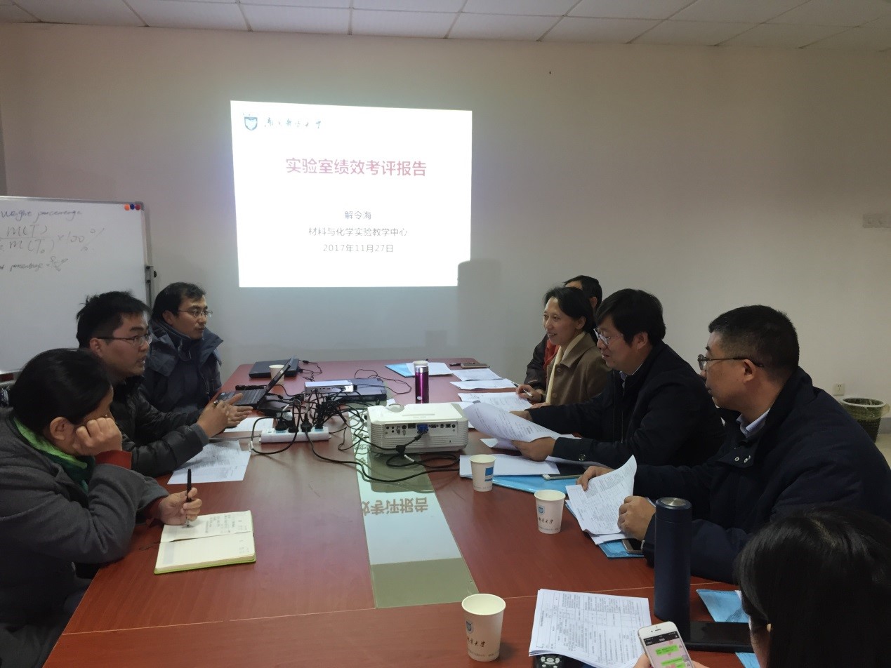 2017年11月27日,资产管理与实验室建设处高翔副处长组织专家,对开云体育app下载 实验中心进行2016-2017年度实验室绩效考评,考核内容包括实验室绩效考评记分表、自评报告及表中所有数据的支撑材料,如实验教学大纲、实验课安排表、实验室开放记录、大型贵重仪器设备使用记录、仪器设备资产账、仪器设备维修记录等能够支撑自评记分表中得分的相关材料。