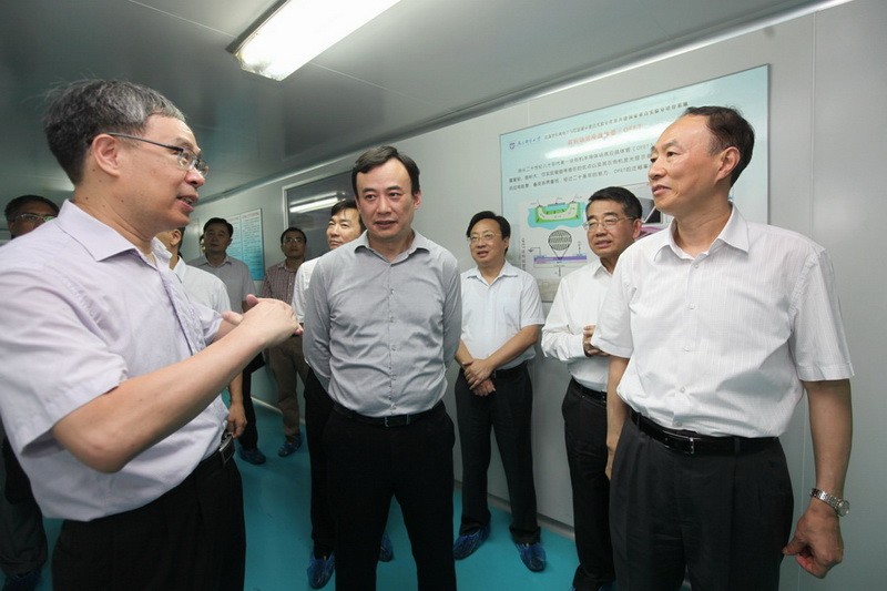 马秋林副省长一行实地考察“有机电子与信息显示国家重点实验室培育基地”,深入实验室各个单元,通过边考察边询问,详细了解实验室的基础条件、前期投入、高水平成果产出、社会影响、服务社会等方面的建设进展和成效。