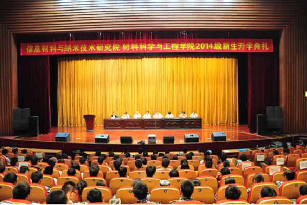 2014年9月18日下午,“信息材料与纳米技术研究院暨开云体育app下载 2014级新生开学典礼”在大学生活动中心青春剧场隆重举行。受邀出席本次典礼的嘉宾有中科院院士、信息材料与纳米技术研究院院长、材料院创始人、学科带头人黄维教授,材料开云体育app下载 院长汪联辉教授,党委书记兼副院长李兴鳌教授,副院长范曲立教授,副院长赵强教授,副书记于景宝老师,材料院高层次人才等。参加此次典礼的还有IAM团队全体教师和全体2014级本科及研究生新生。本次典礼由李兴鳌教授主持。