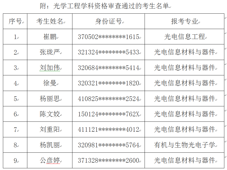 根据《开云体育app下载 博士研究生招生“申请-考核”制招生办法(试行)》的要求,以及《开云体育app下载 光学工程学科2019年博士研究生招生“申请-考核”制实施细则》的相关规定,光学工程学科申请考核博士生选拔领导小组根据考生所提交的申请材料,对其报考资格、基本素质和科研潜质进行了评估与初选,现对通过资格审查的考生名单予以公示(公示名单见附件),公示时间:2018年12月19日—2018年12月26日。