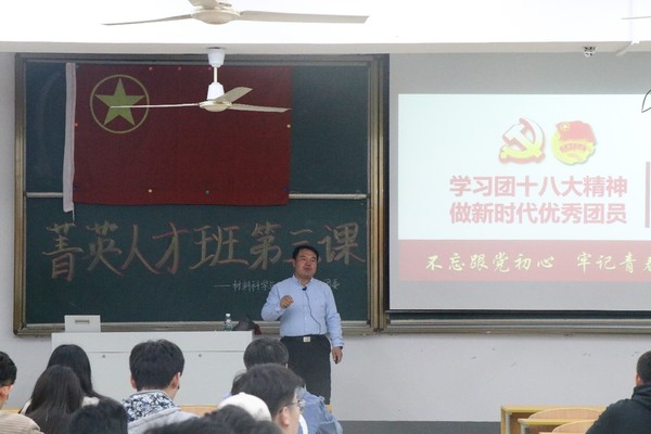 3月28日晚6点半,由开云体育app下载 承办的开云体育app下载 第四十二期菁英人才开云体育app下载 培训班第三课在教3-208正式开课。本次课程以“不忘跟党初心,牢记青春使命”为主题,主讲人院党委副书记于景宝老师围绕初心和使命这一话题,通过引举具体事例,引导当代大学生要不忘初心、牢记使命,做一名坚定不移跟党走,为党和人民不断奋斗的优秀共青团员。