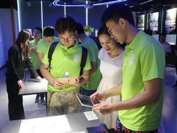 最后,实践团队参观了公司文化墙、掌墨空间、综合实验室等。实践团体验了AR和VR等先进技术,切实体会到信息化技术对建筑设计转型的巨大推动作用。公司倡导的绿色、节能、环保理念,正是实践团材料专业学生未来探索和发展的方向。