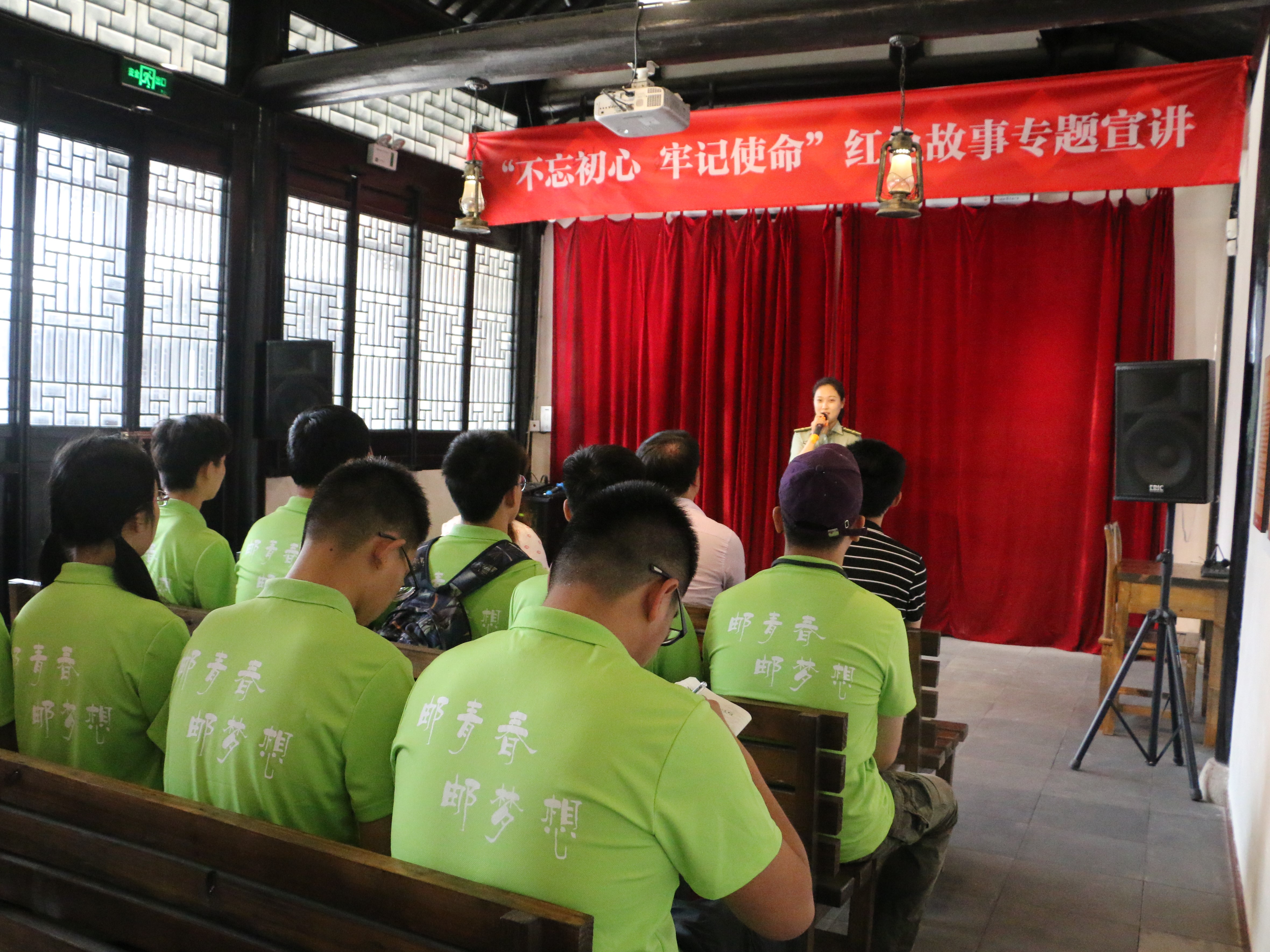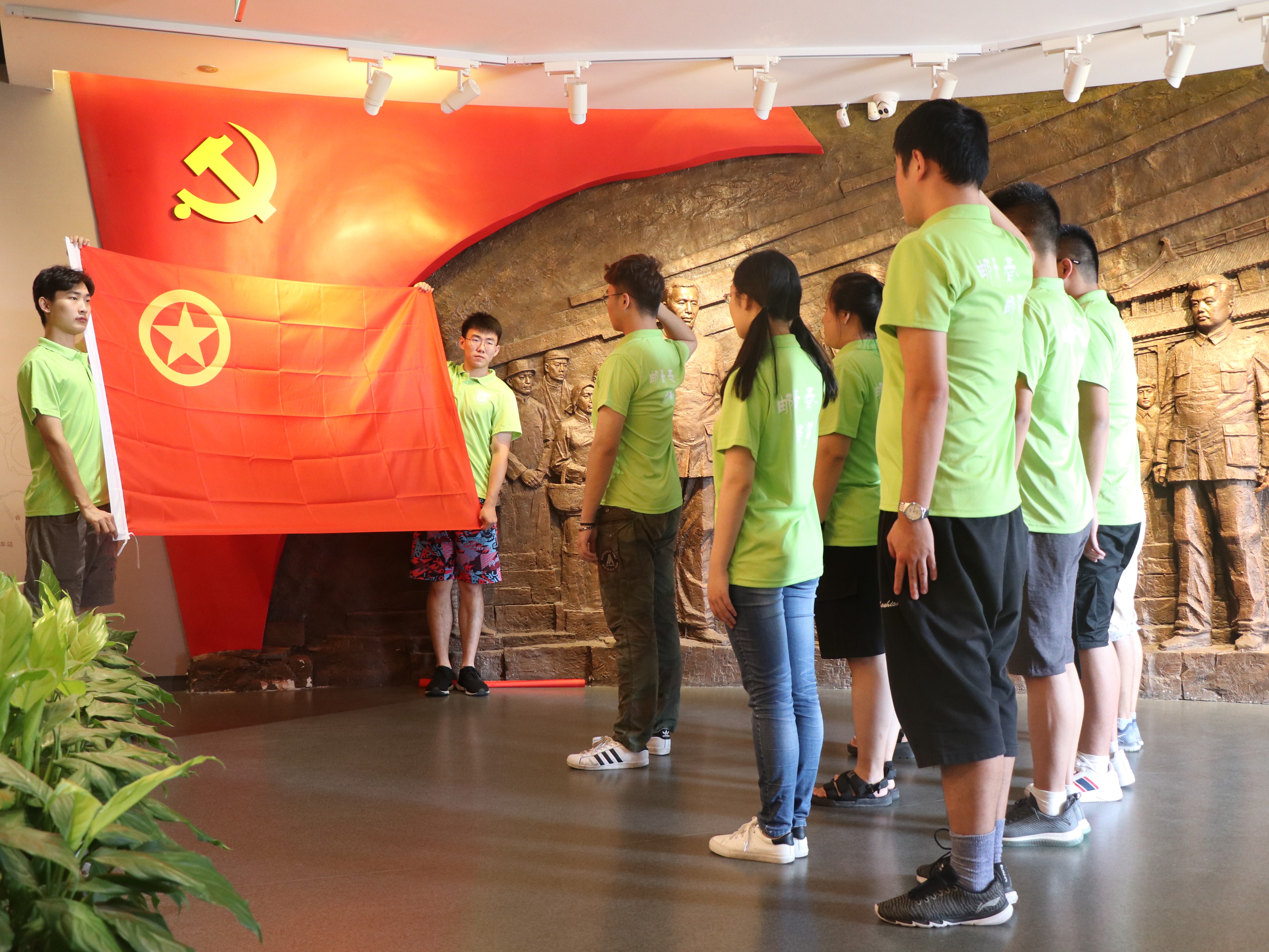 随后,队员们到达新四军重建军部旧址,感悟红色文化,领略革命精神。军部旧址保存了盐城的抗战记忆,再现了华中局的历史与辉煌,凸显了中国共产党在领导敌后抗战中的特殊作用和伟大贡献。在红色文化的浸润下,实践队长王涛带领队员们重温入团誓词,庄严的仪式让大家更加明确了自己的义务和职责。