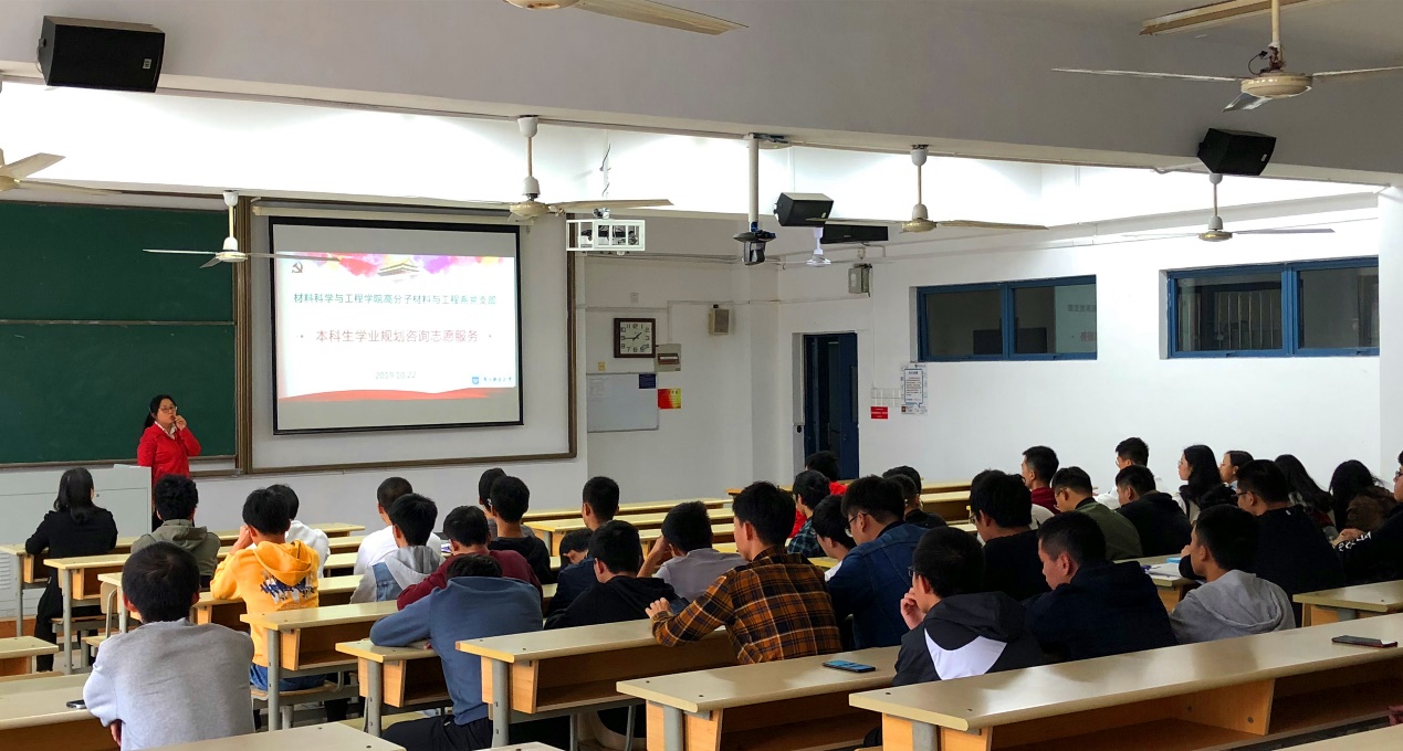为深入推进“不忘初心、牢记使命”主题教育,激励全体党员同志把主题教育的成果转化为促进各项工作发展的实际成效,高分子材料与工程系教师党支部在10月22日下午开展了学业规划咨询志愿服务,与高分子系本科二年级学生就学业学习、未来发展和人生规划等方面展开交流和指导。