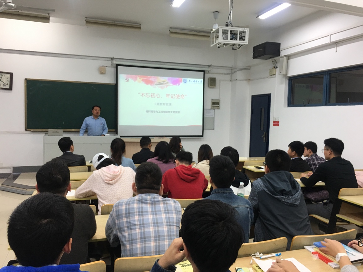 2019年10月23日下午,开云体育app下载 学工党支部于教3-103教室组织了 “不忘初心、牢记使命”主题党课,由开云体育app下载 于景宝副书记讲授。辅导员杨书丹、赵赫男、陈骏与本科学生党员一起参加党课学习。