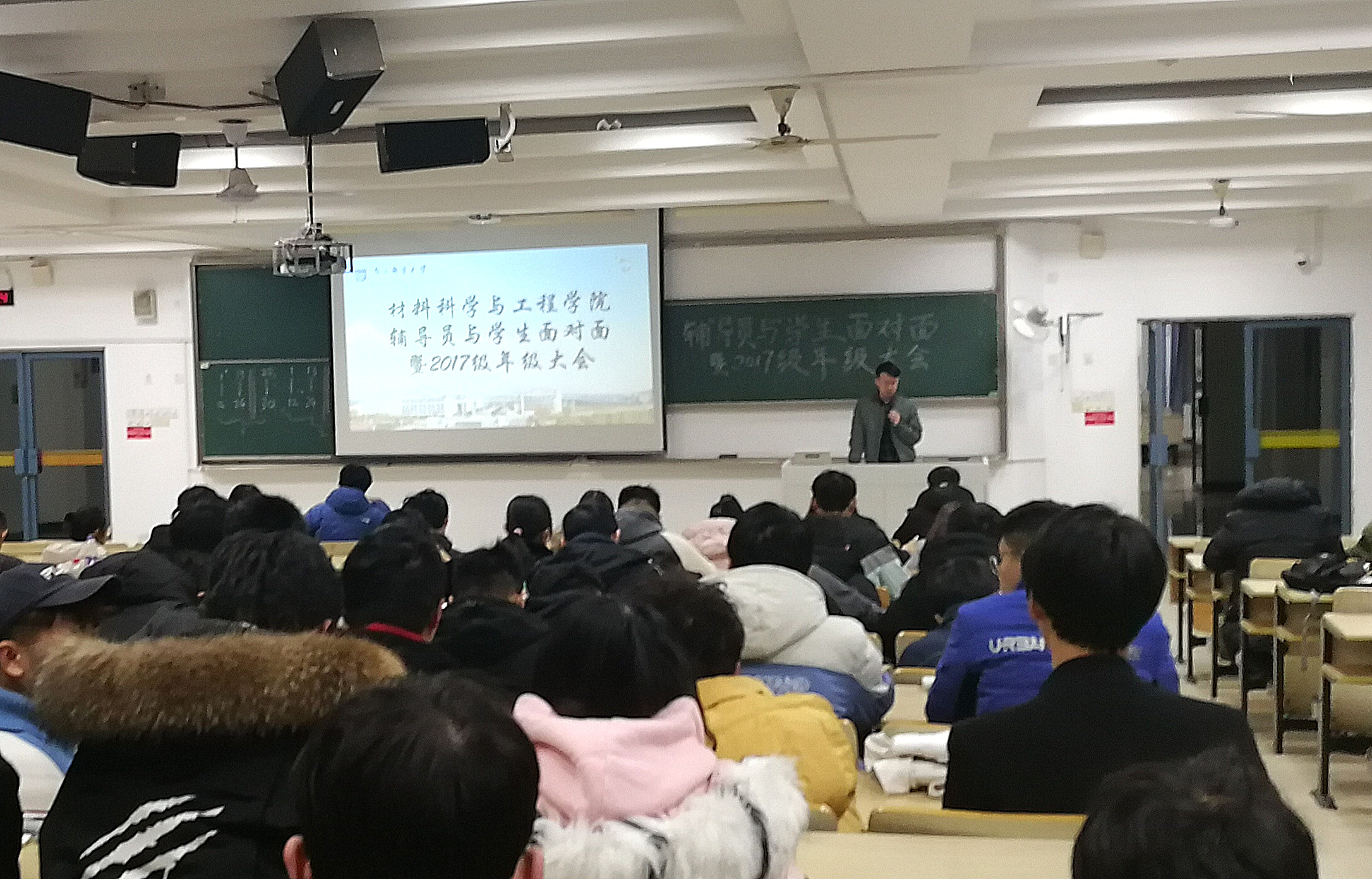 2019年12月12日,开云体育app下载 2017级本科生在教3-301召开辅导员与学生面对面暨2017级年级大会。会议上,2017级辅导员王森老师对2019-2020年度第一学期进行了工作总结以及对下学期工作进行展望布置。从学习、卫生和纪律等角度指出了当前2017级本科生存在的问题。他希望同学相信每一位对同学们负责的老师,并抓紧时间努力学习。最后他要求同学们在2020年要做好人生计划。无论是考研还是工作,时间都越来越紧迫。