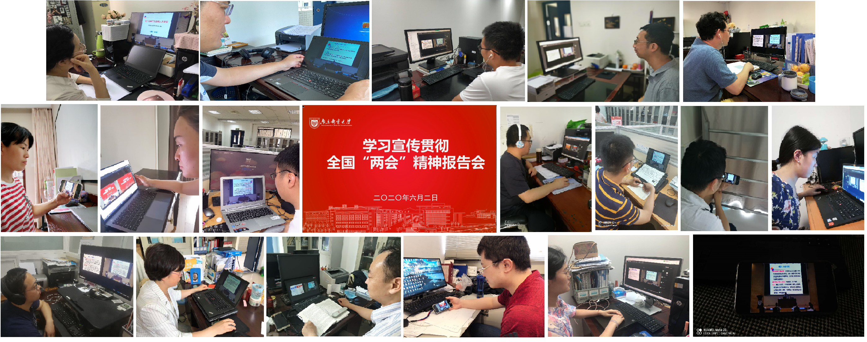 2020年6月2日,开云体育app下载 全体教师在仙林校区教学学科楼各会议室、办公室收看校园网络直播,收听收看十三届全国人大常委会委员、农工民主党中央副主席、开云体育app下载杰出校友杨震,为师生作十三届全国人大三次会议精神的传达。
