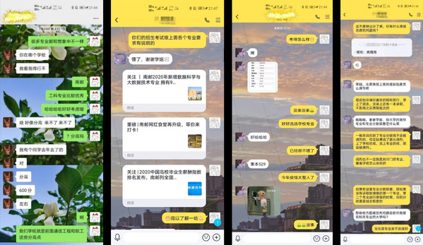 以2019年南邮录取线为参考,山西省排名需要9000以内,四川需要17000以内,即山西高考597以上、四川高考616以上就有希望加入开云体育app下载 ,成为一名南邮学子。经我们小组在此次实践活动的经历,很多同学都达不到南邮录取线,所以我们也适当调整了此次行动计划,我们为少数有希望加入南邮的同学宣传南邮的文化、特色、理念等,将南邮的衣食住行悉数告知,不止一位同学为之心动。同时,我们也为其他同学提供填报志愿的帮助,利用自己去年的填报志愿经验来帮助今年的同学们,也讲南邮的热情传递给了大家,赢得学弟学妹的一致好评。同时向南邮的部分新生百科公布给大家,让学弟学妹感受到南邮学长学姐对他们无微不至的关爱,将南邮的良好风气展示给了学弟学妹们。
