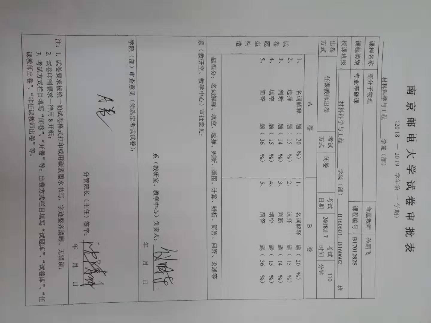 1.试卷审批表(试卷印刷前课程负责人、系主任、教开云体育app下载 长签字)