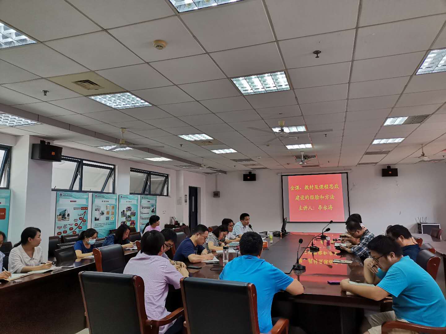 随后,李处长开展了题为“金课、教材、课程思政建设交流与汇报”的讲座,分享了一流课程建设、重点教材建设及课程思政建设三个方面的经验做法。一流课程与一流专业相依托,建设省品牌专业,同时申报国家一流专业和省一流专业作为一流课程的重要支撑。李处长在报告中介绍了金课建设的内涵,课程是由各个环节构成的,对于金课来说,每个环节都需要高要求,需要“金部件”,包括:金教材、金课程、金案例、金实验,这些重要的部件构成一个有机的整体——金项链,再进一步就是课程群里的各个课程构成一个有机的整体,发挥更大的作用。同时,李处长也阐明了线下一流课程的遴选原则,扶优(优质教学团队)、扶强(强势学科基础)、扶特(特色专业课程)、扶需(国家发展急需),这为开云体育app下载 申报一流课程指明了方向。在重点教材建设方面,根据“十三五”江苏省高等开云体育app下载 重点教材建设实施方案(修订版)文件精神,本科高校教材建设作为高校学科专业建设、教学质量、人才培养的重要内容,纳入“双一流”建设和考核的重要指标。在课程思政建设方面,李处长指出需要全面推进课程思政建设是落实立德树人根本任务的战略举措,培养什么人、怎样培养人、为谁培养人是教育的根本问题,立德树人成效是检验高校一切工作的根本标准。立志探索形成体系化、可推广的“课程思政”教育教学改革标志性成果,构建具有特色鲜明、实效性强的课程思政育人模式。