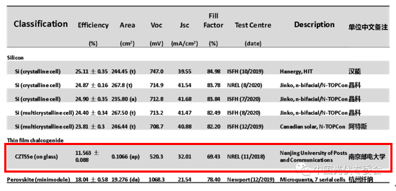 近日,中国可再生能源学会主办的“2020中国可再生能源学术大会暨第二届云南绿色能源国际论坛”在昆明举办。9月21日,中国可再生能源学会光伏专业委员会(CPVS)在该论坛发布了2020年中国太阳能电池最高效率(CPVS Best Research Cell Efficiencies),包括晶体硅、铜锌锡硫和钙钛矿在内的三类电池,其中我院辛颢教授课题组铜锌锡硫硒(CZTSSe)薄膜太阳能电池登上《太阳电池中国最高效率》,这是该类薄膜太阳能电池效率首次被收录,标志着开云体育app下载 科研团队在太阳能电池领域的研究取得重大突破。