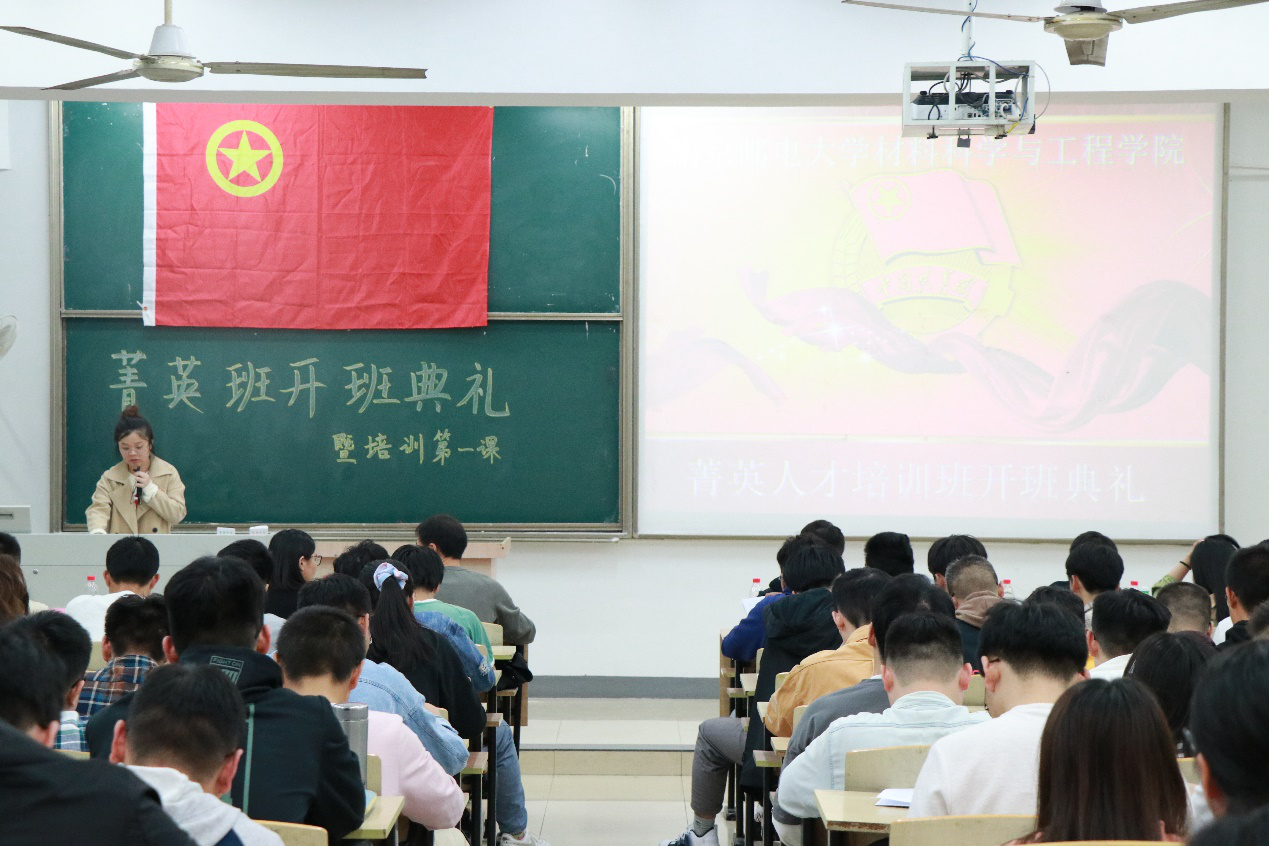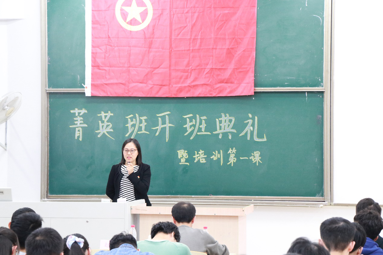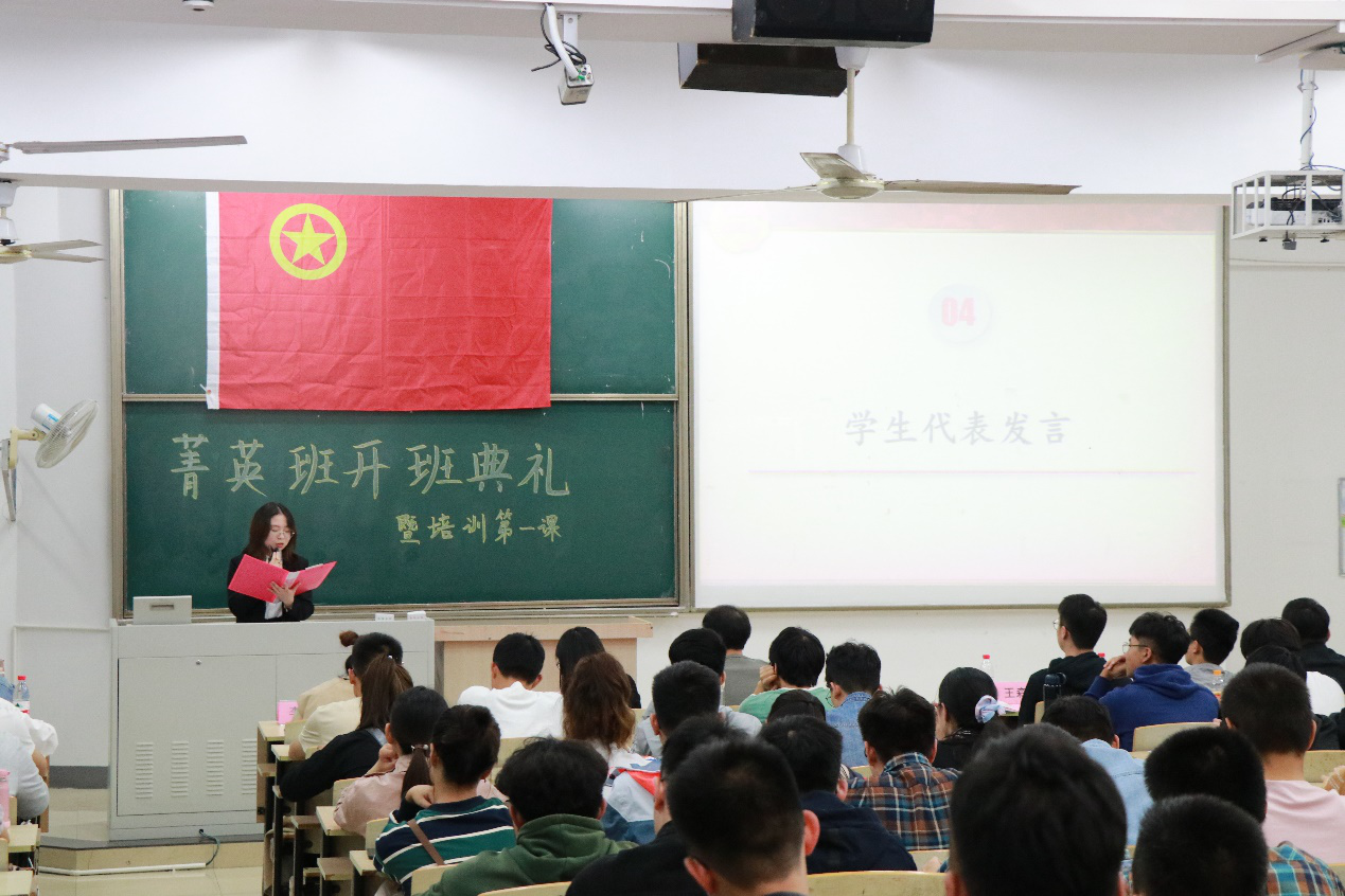 学生代表于瑾同学做表态发言并阐述了自己对菁英班的理解,讲述了菁英班这个大舞台对当代大学生在思想成熟进步方面发挥的作用,她呼吁大家要为成为一名真正的大学生骨干而努力奋斗。