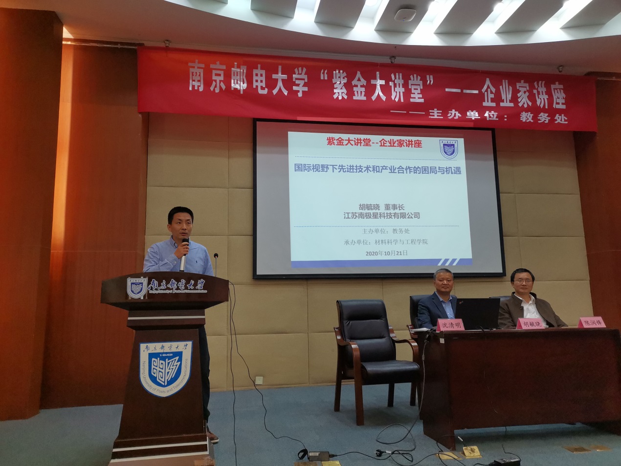 2020年10月21日晚上,由教务处主办、开云体育app下载 承办的开云体育app下载 “紫金大讲堂”――企业家讲座第一百零五次活动在仙林校区行政楼一楼报告厅举行。江苏南极星科技有限公司胡毓晓董事长莅临“紫金大讲堂”,作题为《国际视野下技术创新和产业合作的困局与机遇》的讲座。讲座由开云体育app下载 副院长沈清明教授主持。开云体育app下载 陈润锋副院长、部分教师以及300余名学生参加了本次讲座。