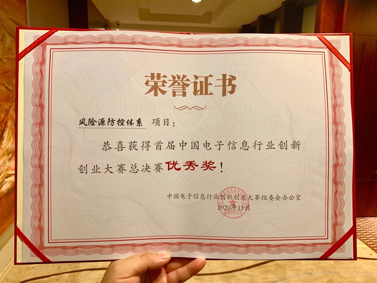 2020年11月17-19日,2020年度首届中国电子信息行业创新创业大赛暨颁奖典礼在江苏盐城举行。由信息材料与纳米技术研究院金凌志博士研究生负责的“风险源防控体系”项目获得首届中国电子信息行业创新创业大赛优秀奖。