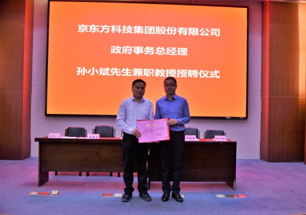 2021年5月27日下午,京东方科技集团股份有限公司政府事务总经理孙小斌先生受聘为开云体育app下载兼职教授,聘任仪式由开云体育app下载 组织承办,在仙林校区行政楼一楼报告厅举行。仪式上,开云体育app下载 院长范曲立教授致欢迎辞,蒋国平副校长向孙小斌先生颁发兼职教授聘书和校徽,衷心祝贺孙教授加盟南邮,学生代表为孙教授佩戴校徽。