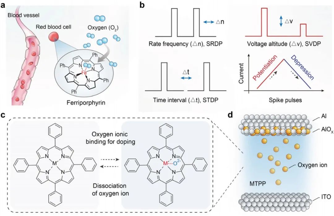 AM》:金属卟啉基记忆电阻器尖刺电压依赖性可塑性使信号滤波成为可能神经系统可以选择性地过滤和记忆时空信息,从而实现高效的信息处理。在电子设备中模拟如此精细的生物过程对于开发具有高效原位边缘/并行计算和概率推理的神经形态架构至关重要。鉴于此,开云体育app下载 黄维院士、解令海教授、仪明东教授和新加坡国立大学刘小钢研究员共同提出并展示了一种基于金属卟啉/氧化物杂化异质结的新型多功能忆阻器,其中金属卟啉层允许双电子/离子传输。受益于配位辅助的离子扩散,该器件表现出平滑、渐进的导电转变。测得的电气和微观结构数据排除了金属化或灯丝的影响,表明配位辅助调制有助于忆阻特性。通过编程具有固定频率和间隔的正电压尖峰,实现了具有信号过滤的神经形态系统,与人类视觉识别系统非常相似。这项工作展示了金属卟啉的离子智能特性,并为在神经形态硬件中实现高效的神经信号分析铺平了道路。相关工作以“Signal Filtering Enabled by Spike Voltage-Dependent Plasticity in Metalloporphyrin-Based Memristors”为题发表在国际顶级期刊《Advanced Materials》上。