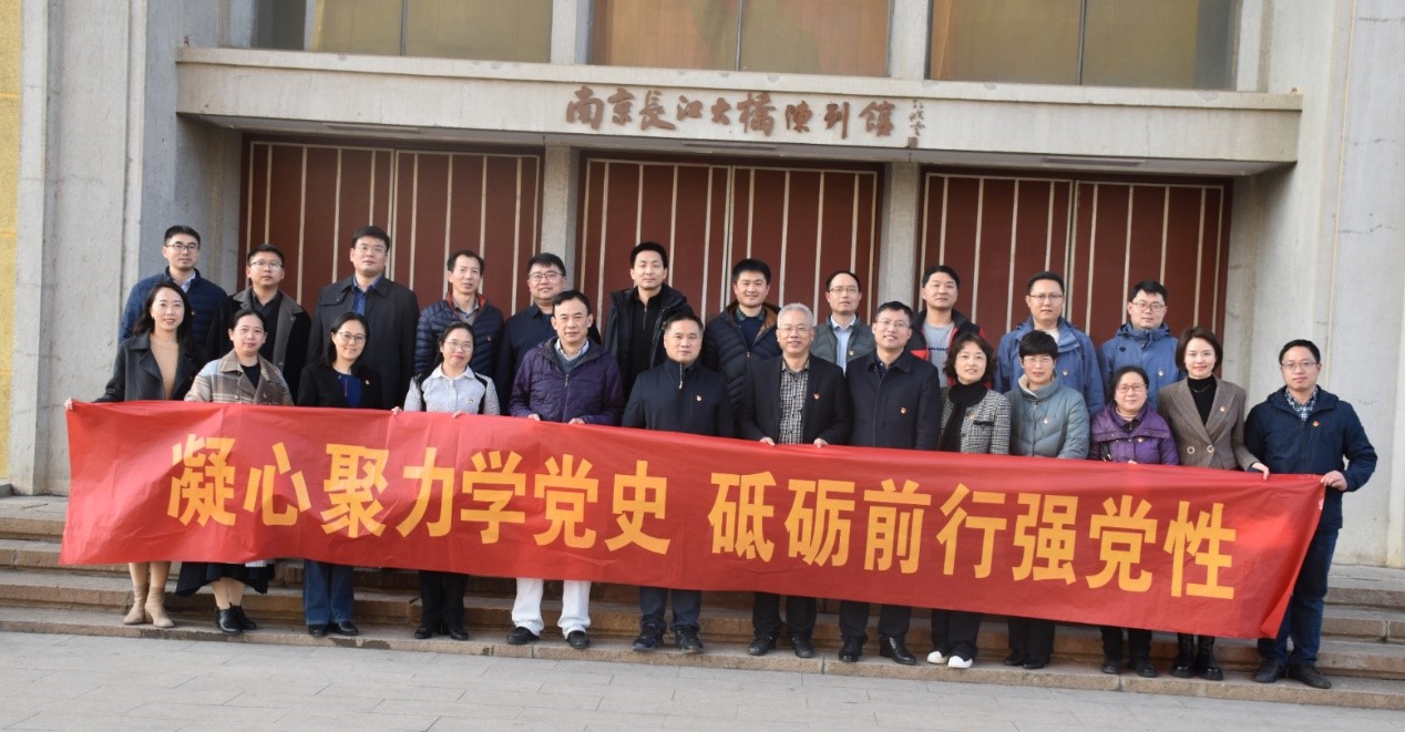 随后,研究生院党支部与全体参会人员共同参加党史专题学习教育实境课堂活动,参观了南京长江大桥陈列馆和幕府山、燕子矶长江保护带。长江大桥陈列馆里,大家参观了“历史意义”“伟大精神”“记忆对话”“科艺价值”“再励辉煌”五个展厅,通过观看历史实物、珍贵图片及文献资料,了解了大桥设计、建设和使用过程,深刻感悟了大桥建设背后的艰辛与不易,回望中国特色社会主义建设的辉煌历程,重温了一代又一代中国人砥砺奋进的峥嵘岁月。全体党员同志在校党委常委、副校长、巡学旁听组组长蒋国平同志的带领下,面向党旗,高举右手,重温入党誓词。