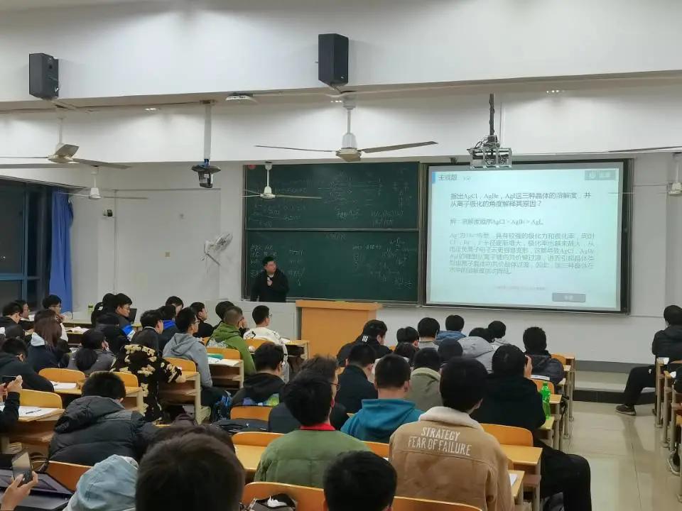 在讲座中,朱学长详细讲解了当前所学的难点,并为我们画出了考试的重点重心,细心和耐心的讲解了其中的要领,让每一个知识点得以更好的吸收和掌握。本次授课为材料院大一同学提供了一个复习的机会,帮助同学们进一步理清了备考思路,完善自己的知识体系。