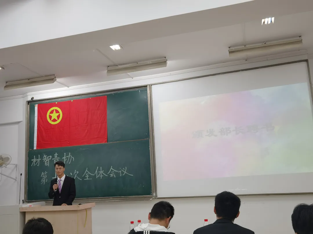 材智青协前主席丁秉强、吕俊力上台发言,讲述了在青协的点点滴滴,给我们提供了前人成功的经验,为青协之后发展的道路指点了明灯。他们期望青协的每一个成员都能在志愿活动中结交到好的友谊,同时表达了对青协美好未来的期望。