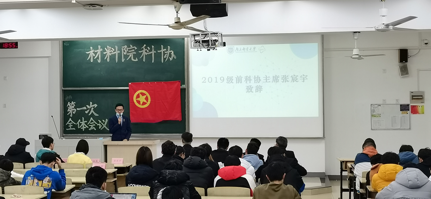 首先是2019级科协主席张宸宇学长做开幕致辞。学长肯定了本学期科协的发展和进步,祝愿本届科协全体成员能够务实开拓,不断创新,共同为材料院的美好未来贡献我们的力量和智慧。