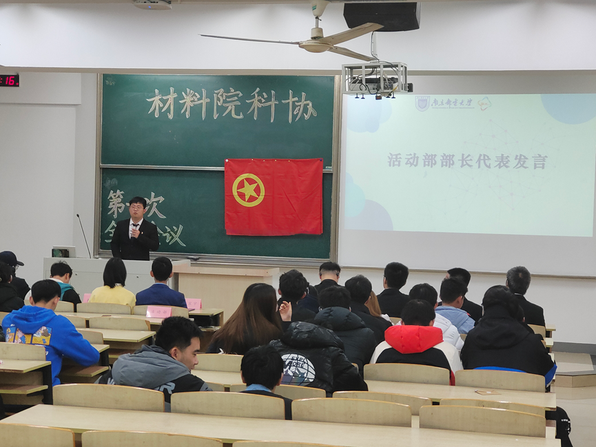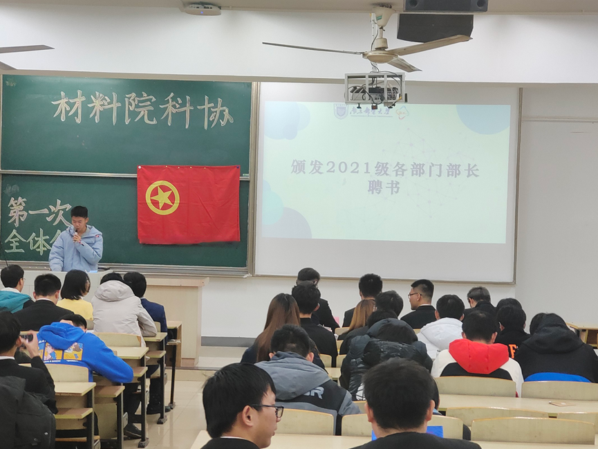 出席本次会议的有:材料院研究生会主席于海鹏,材料院学生会主席郭鹏浩,材智青协主席林嘉诚,材料院分团委秘书长朱佳,19级科协主席张宸宇,20级科协主席陈海燕以及本届科协全体成员。