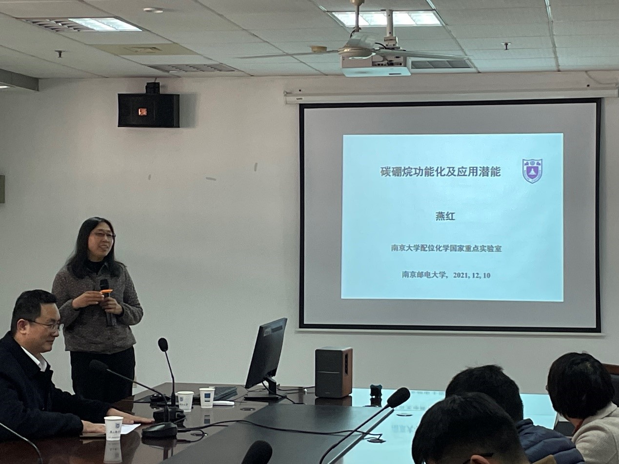 2021年12月10日上午10点,南京大学的燕红教授受开云体育app下载 陈润锋教师邀请,在仙林校区教五413为师生作了以“碳硼烷功能化及应用潜能”为主题的精彩报告。材料院副院长陈润锋主持了报告,材料院70余名师生参加。