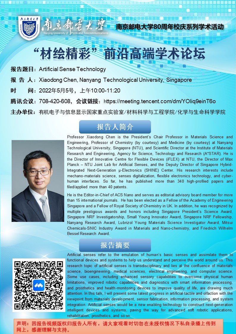 新加坡南洋理工大学陈晓东教授学术报告