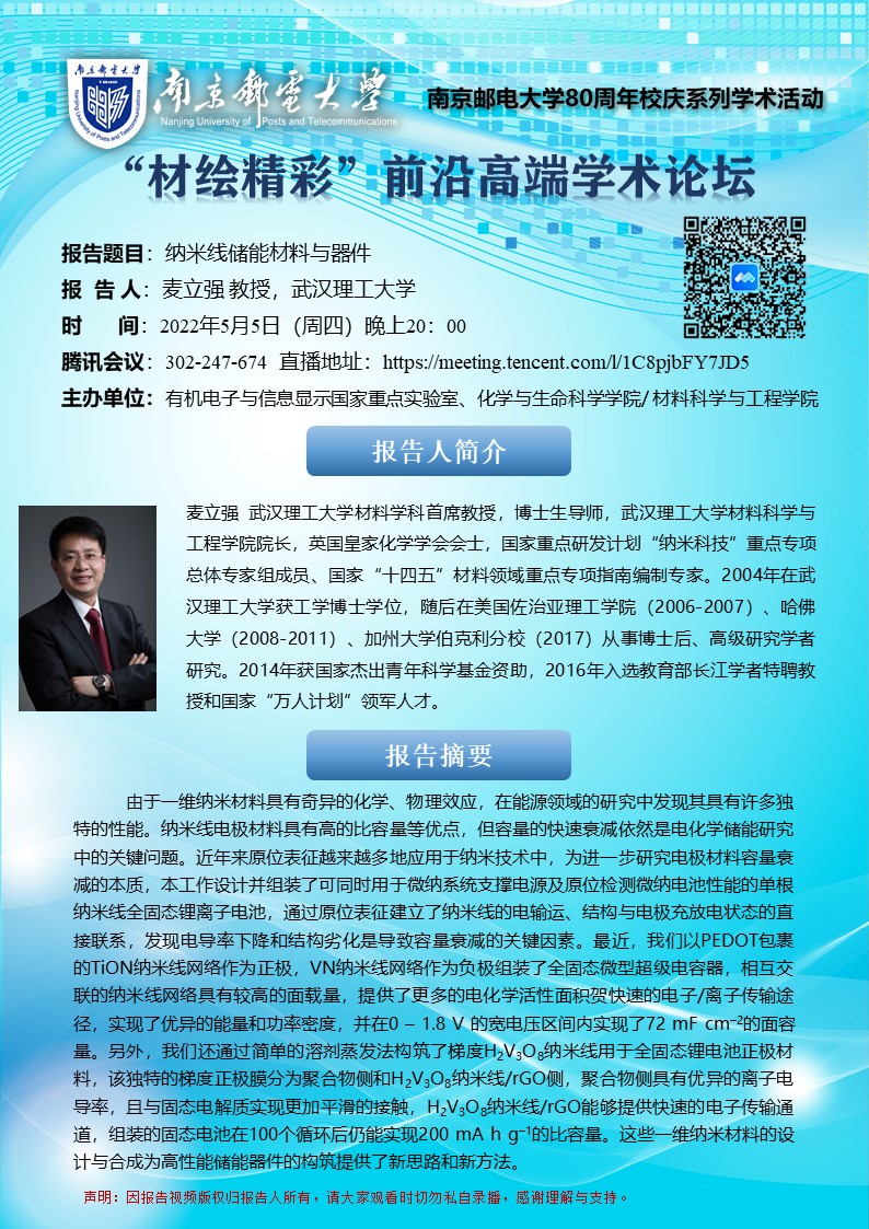 武汉理工大学麦立强教授学术报告