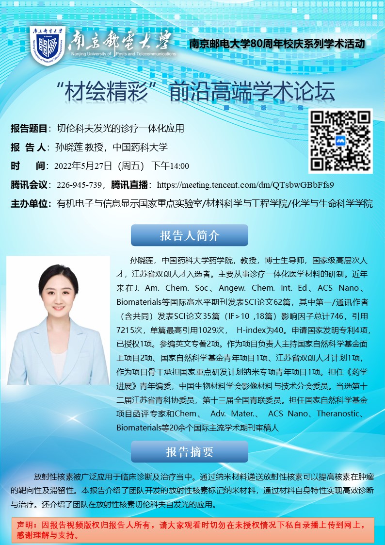 中国药科大学孙晓莲教授学术报告