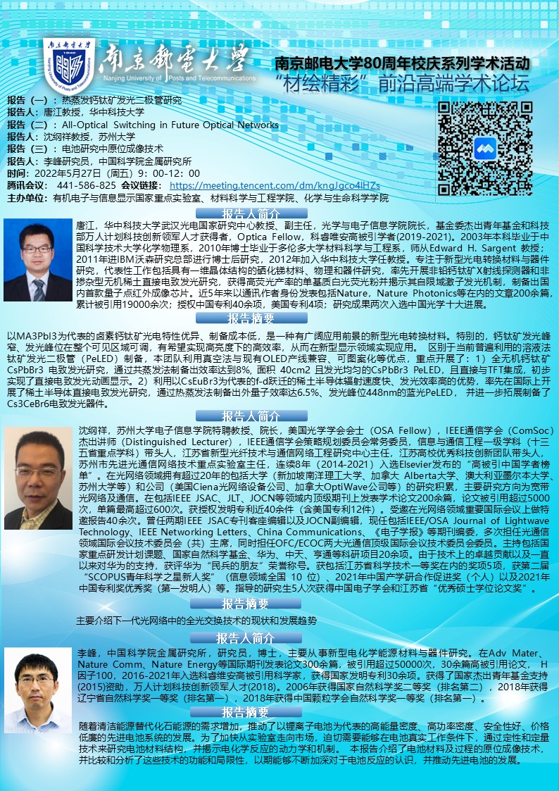 华中科技大学唐江教授&苏州大学沈纲祥教授&中国科开云体育app下载 金属研究所李峰教授学术报告