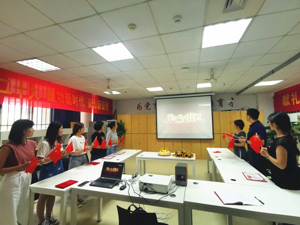 最后,全体党员合唱《我和我的祖国》,用饱满的热情、激昂的歌声抒发对党、对祖国的热爱之情,向祖国母亲献上最诚挚的祝福。