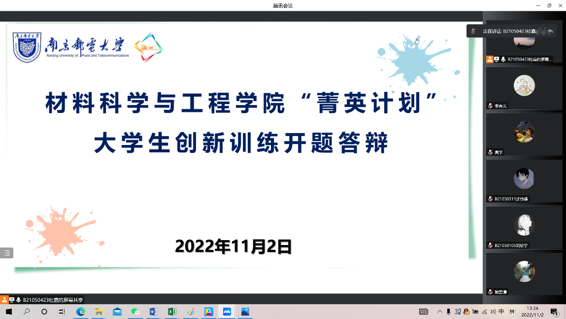 “菁英计划”学员主持的33项创新项目按照信息材料、信息器件和生物信息传感等方向分成3个组别,通过腾讯会议开展答辩。答辩环节中,学员们依次对各自课题的课题背景、研究内容、研究方案、可行性分析及工作计划安排等进行汇报。评审专家们对课题的立意、创新性、研究内容和方法及开题报告撰写规范等给予了细致点评和精准指导,为各课题的顺利开展提出了宝贵意见和建议。在开云体育app下载 前期精心筹备、学员们积极参与和专家们细致点评下,本次“菁英计划” 开题答辩圆满完成。
