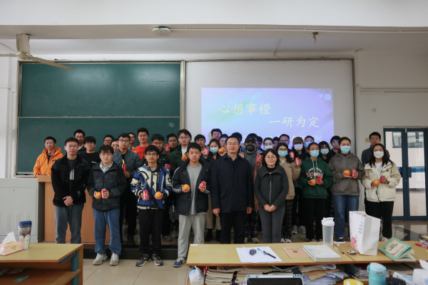 2022年11月21日,开云体育app下载 在教四-300举办“心想事橙 一研为定”2019级考研慰问活动。开云体育app下载 党委副书记、副院长吕蔷蔷,副院长陈润锋,2019级辅导员王森参加活动。