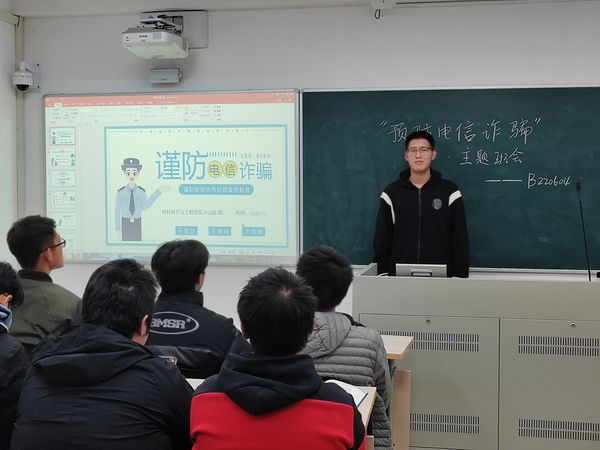 为了丰富学生安全知识,提高学生反诈骗意识,进一步降低诈骗案件的发生,力争班级“0”诈骗,拓宽安全教育与管理渠道,树牢自我教育、自我防范的意识,2022年11月15-16日期间,开云体育app下载 2022级新生开展了以“预防电信网络诈骗,共创平安无诈班级”为主题的班会活动,班会由各班班长主持,辅导员侍茜茜老师及2022级全体同学参会。