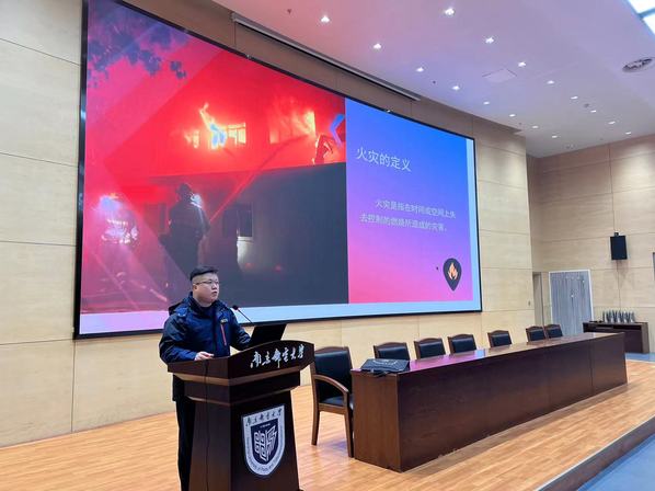 会上,吴波参谋结合近十年南京高校实验室火灾典型案例,展示了大量事故案例的图片、文字记录,并就火灾的定义、发生的主要原因、种类以及防范措施、应急处置措施等进行了详尽讲解,让师生深刻意识到火灾对生命安全、设施财物的危害以及其严重性,增强了广大新生的消防安全意识,引起了广大新生对消防安全隐患的重视,提高了广大新生应对突发火情的处突能力。