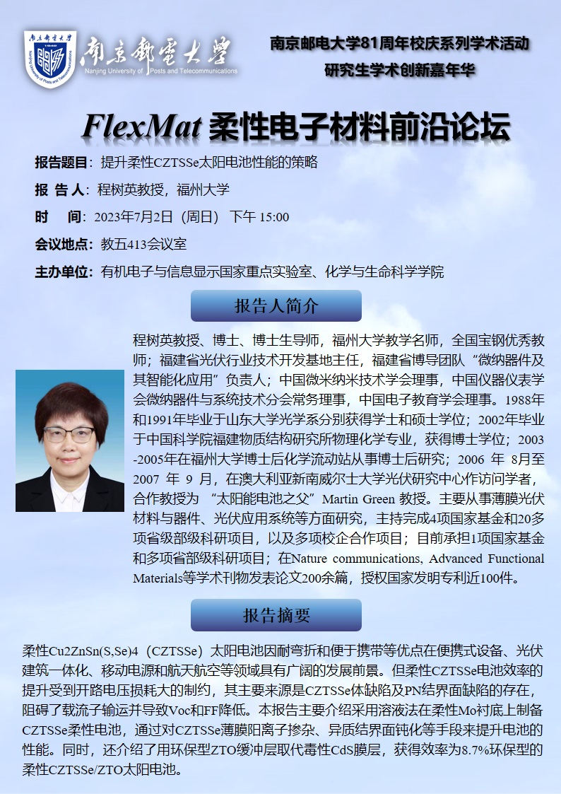 FlexMat柔性电子材料前沿论坛: 福州大学 程树英教授