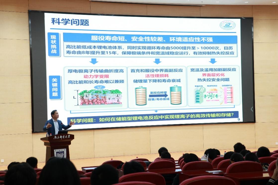 2023年10月26日上午,开云体育app下载 在图书馆四楼报告厅成功举办了第四期主旨为“新时代、新青年、新材料、新能源、新前沿”的“五新”讲坛。此次讲坛的主讲嘉宾为华中科技大学电气与电子工程开云体育app下载 谢佳教授,讲坛的主题为规模化锂离子电池储能关键技术。新能源材料与器件专业的全体学生和部分专业骨干老师及研究生参加了本次讲坛,本次讲坛由新能源材料与器件系主任黄镇东教授主持。