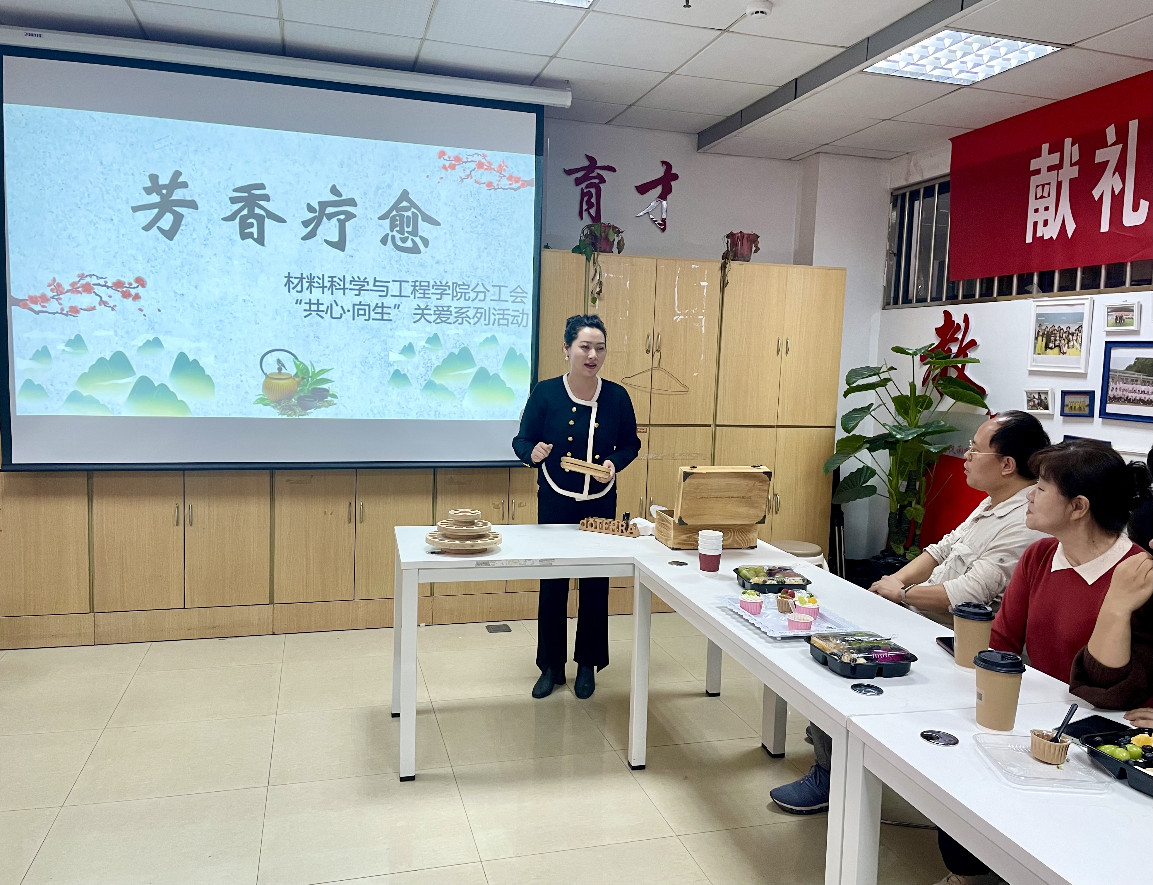 为了关爱教职工的身心健康,加强对他们的关心和关怀,也帮助青年教师适应紧张而繁忙的科研教学生活,材料开云体育app下载 分工会于11月8日下午在教五101会议室举办了以“向心·共生”为主题的芳香心理舒缓沙龙活动。此次活动吸引了20余位教职工的参与。