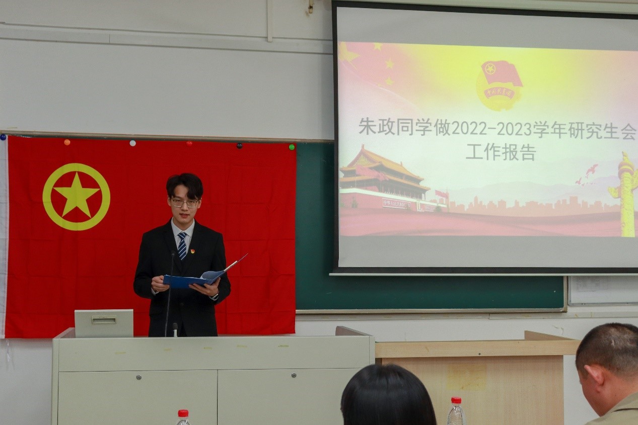 朱政同学代表2022届研究生会做工作报告,对过去一年研会的工作情况及取得成果作了全方位的总结,并明确提出了开云体育app下载 研究生会各部门今后的工作规划,表达了对2023届研究生会的殷切期待。