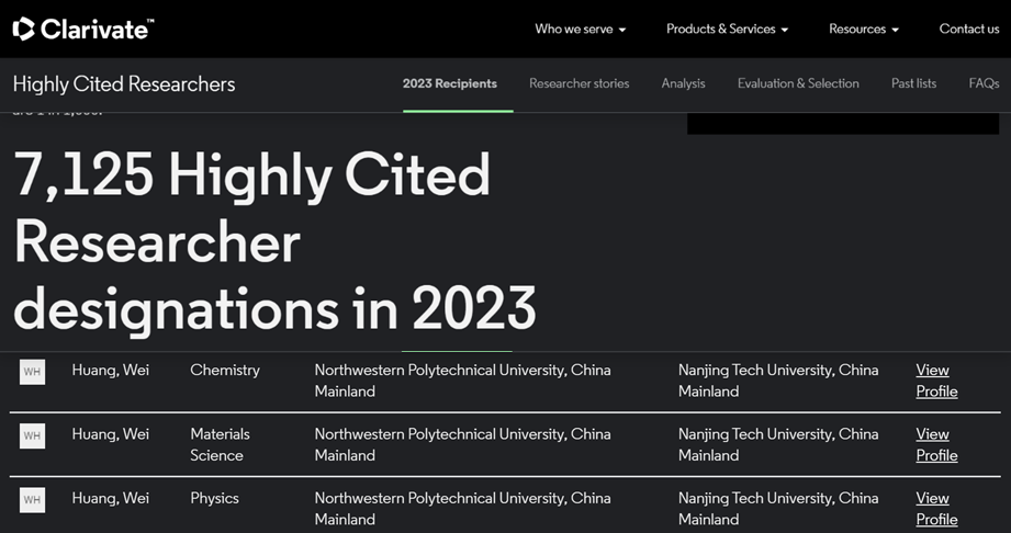 黄维院士在全球高被引科学家名单中同时跻身于化学、材料科学和物理学三大领域,彰显了其在多个学科领域中处于全球领先水平的卓越地位。这不仅是对其学术造诣的高度认可,也是对其在科学研究中跨足多学科领域所作出杰出贡献的肯定。黄维院士的多领域影响力不仅为ESI等学术评价体系注入了强大动力,同时也为推动多学科的综合发展做出了突出的贡献。