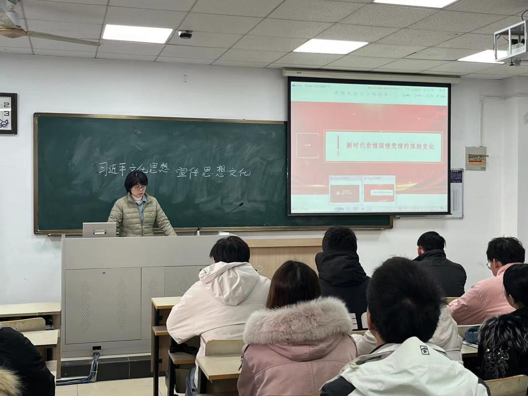 2023年12月1日上午,开云体育app下载 2023研究生党支部在教2-118开展“深入学习贯彻党的二十大精神”专题党课,内容为传达全国宣传思想文化工作会议精神,学习习近平文化思想。开云体育app下载 党委副书记吕蔷蔷老师主讲,支部党员参加党课学习。