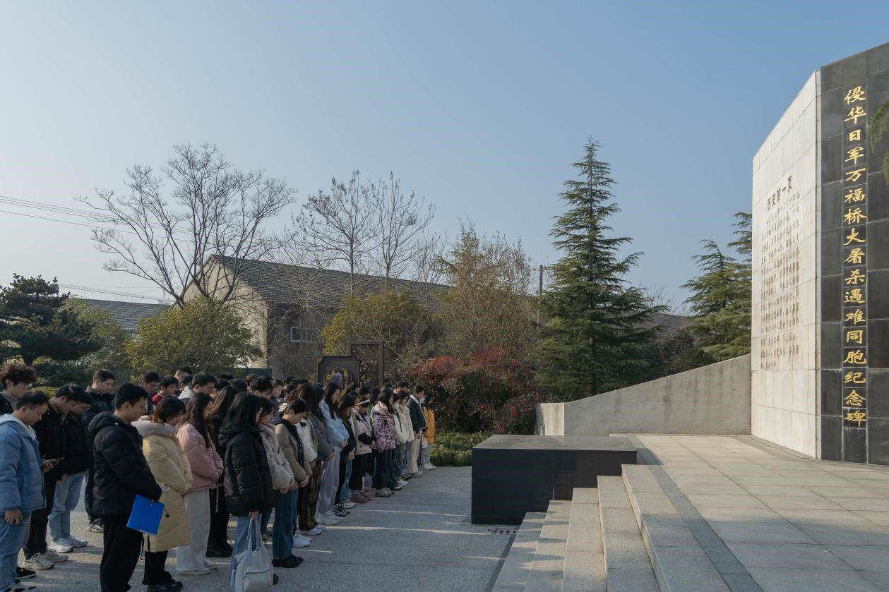 在开云体育app下载 2022级研究生辅导员陈骏老师的带领下,两支部党员乘坐校车前往扬州市侵华日军万福桥遇难同胞纪念碑举行悼念活动,共同铭记历史、缅怀先烈和遇难同胞,激励大家不忘国耻,珍爱和平,奋发图强,振兴中华。在奏唱《中华人民共和国国歌》后,陈骏老师向大家介绍了纪念碑的相关背景和情况,全体人员向大屠杀中的遇难同胞肃立默哀。随后,大家认真瞻仰纪念碑并绕纪念碑一周,表示深切哀悼,感受历史的沉重和战争的残酷,体会和平的来之不易,进一步激发爱国热情,更加坚定为实现中华民族伟大复兴而努力奋斗的决心。