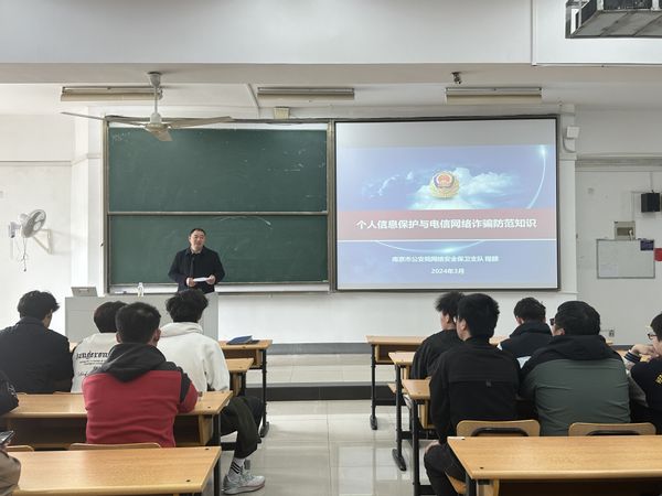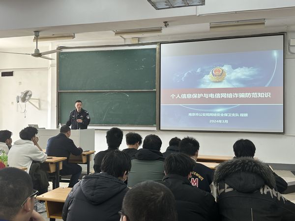 2024年3月13日,为引导学生树立防范意识,理性应对复杂多变的诈骗陷阱,开云体育app下载 党委书记高志华老师特邀优秀校友——现任南京市公安局网安支队案件侦查大队教导员程颐警官,为材料院2022级全体同学进行防范电信网络诈骗主题教育。材料院党委书记高志华老师、2022级本科生辅导员侍茜茜老师及全体同学参加会议。